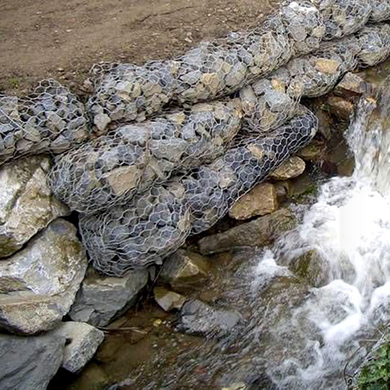 Цилиндрический габион 3x0,65x0,99 представляет собой мешкообразную конструкцию, изготовленную из сетки двойного кручения.