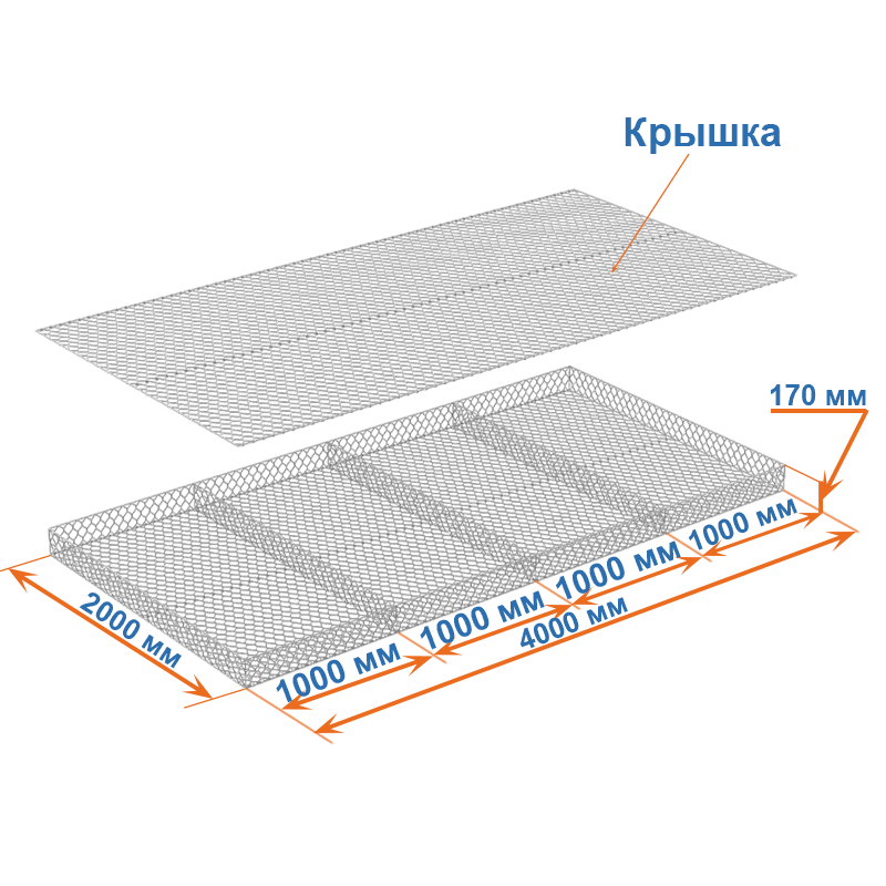 Длина, Ширина, Высота, м Размер ячейки, мм Диаметр проволоки, мм Тип покрытия