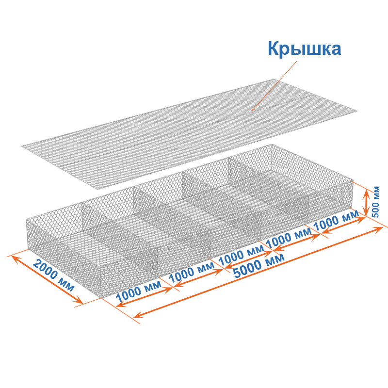 Матрасы Рено 5х2х0,5 (ячейка 80х100, проволока 2,7 мм, покрытие Цинк) применяются для защиты от эрозии.