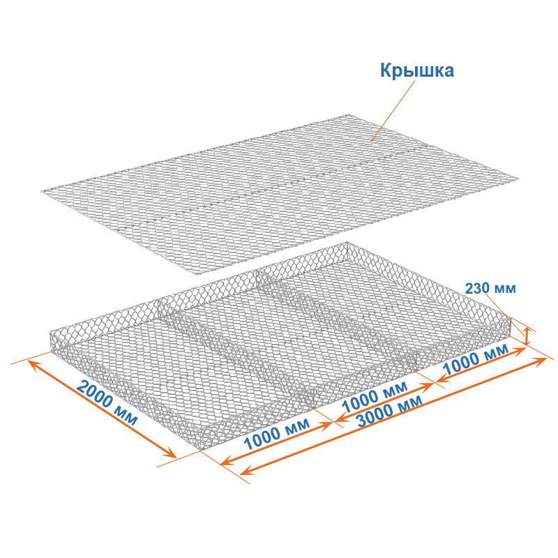 Габион матрац ГСИ-М 3х2х0,23 оцинкованный / ЦП, Ø проволоки 2,7/3,7 мм, размер ячейки 8х10 см фото